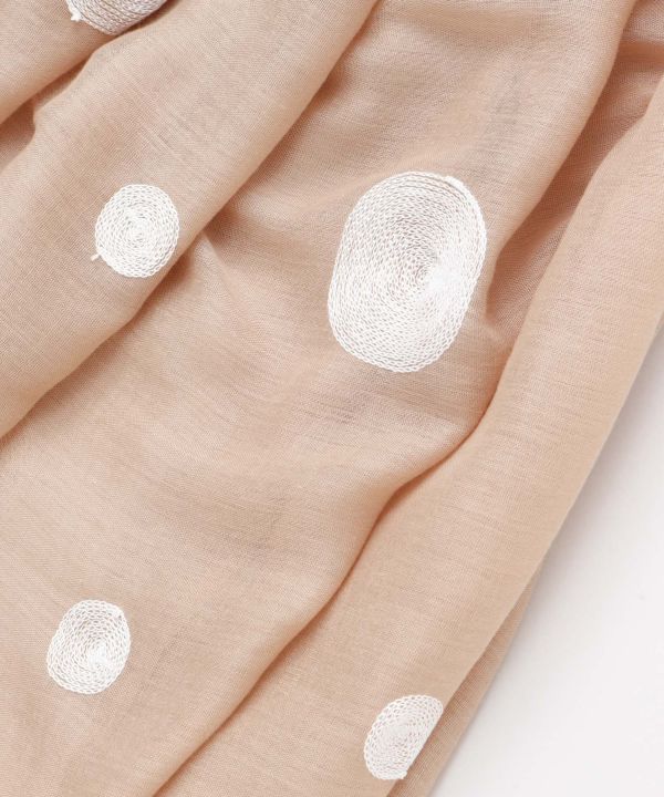 なめらかなシルクのような肌触りが気持ち良いレーヨン素材の刺しゅう入りストール。ランダムに刺しゅうされた水玉模様がナチュラルで可愛らしいデザインです。シワになりにくい薄手の素材なので鞄に入れて持ち歩くのにも便利。大判サイズのストールは日よけや冷房対策にも活躍します。春から秋にかけて長く使えるアイテムです。
