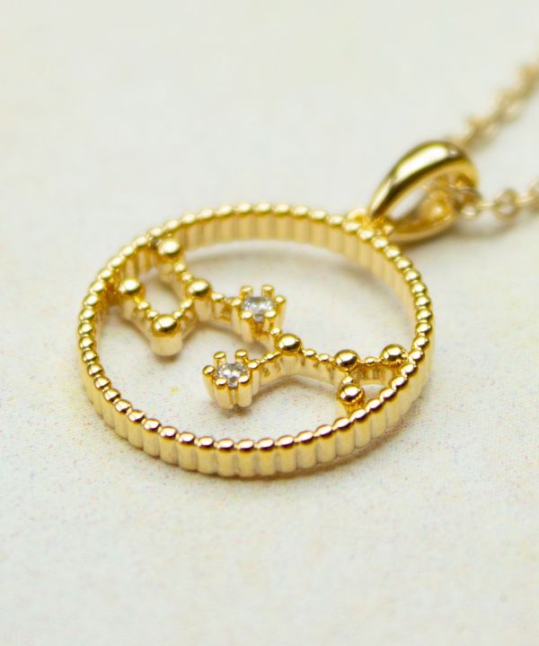 キラリと輝く星座モチーフのネックレス。古くから西洋では「星座モチーフ」はとても縁起が良く、特別なものとして大切にされてきました。生まれ星座のアクセサリーを身に着けると幸せが訪れるといわれています。ご自身用にはもちろん、プレゼントにもおすすめのアクセサリーです。
