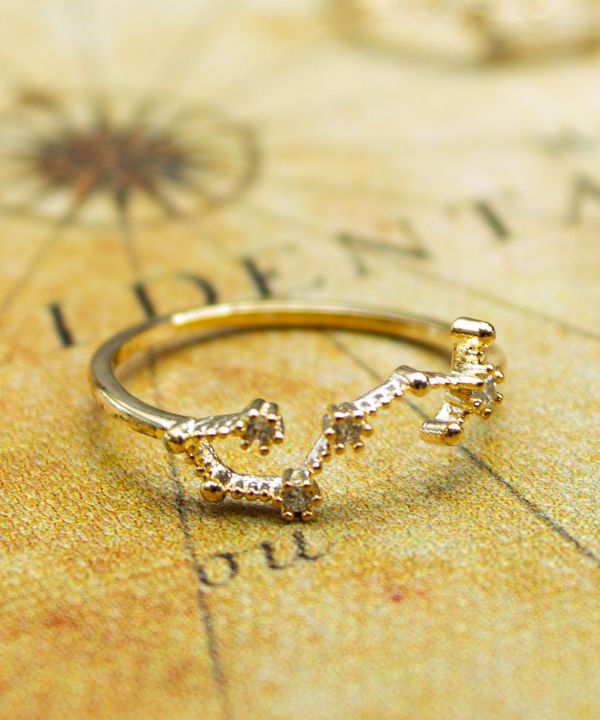 キラリと上品に輝く星座モチーフのリング。古くから西洋では「星座モチーフ」はとても縁起が良く、特別なものとして大切にされてきました。生まれ星座のアクセサリーを身に着けると幸せが訪れるといわれています。ご自身用にはもちろん、プレゼントにもおすすめのアクセサリ