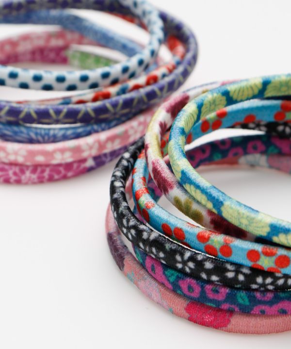 まんまるのゴムに鮮やかに和柄が入った丸々シリーズ。腕に付けても髪に付けても可愛い、シンプルなヘアゴムです。
