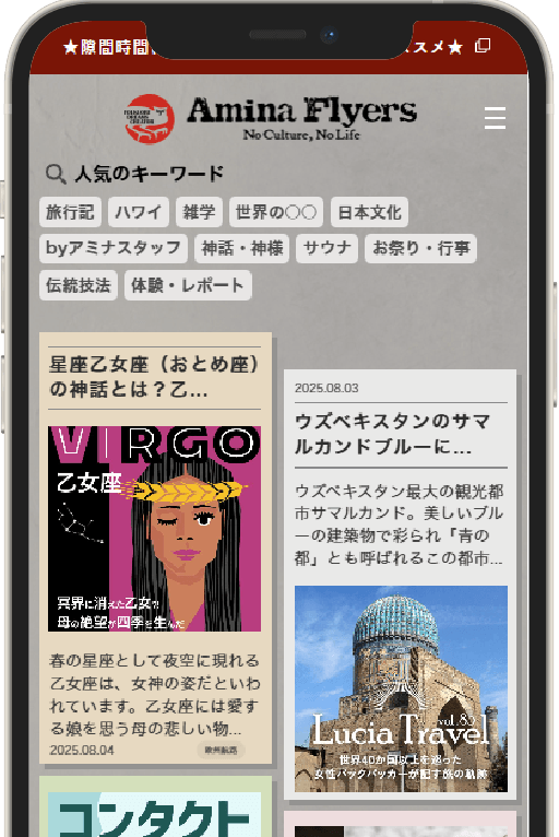 また、読み物サイト「AminaFlyers」の閲覧や、アプリ内で購入できるオンラインショップなど、ショッピング機能も充実しています。