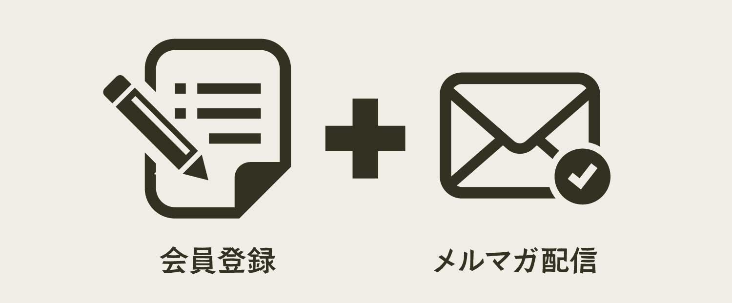 会員特典・制度が適応されるには『会員登録』と『メルマガ配信希望』の両方が必須となります。